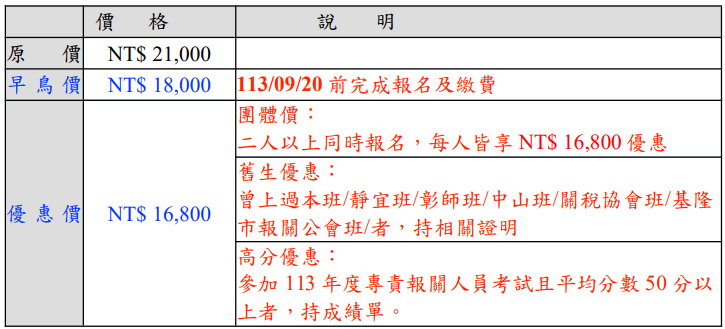 「專責報關人員專技普考證照輔導班_基隆班」招生簡章